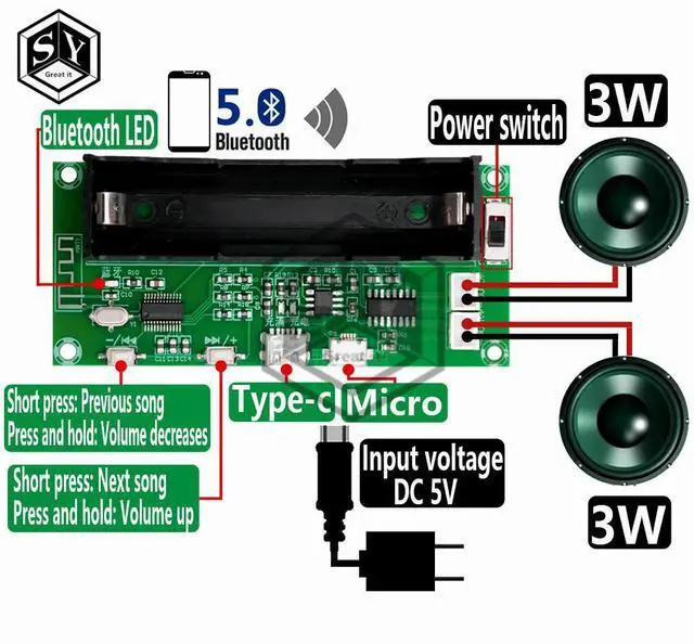 XH-A153 Lithium Bluetooth 5.0 Dual-channel 2 Ch Channel Stereo Low Power Amplifier Board 3W+3W DC 5V PAM8403 Chip