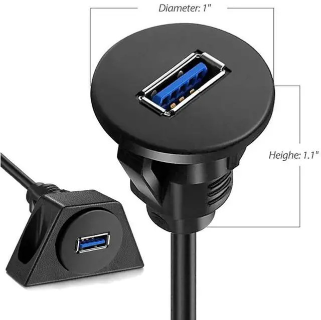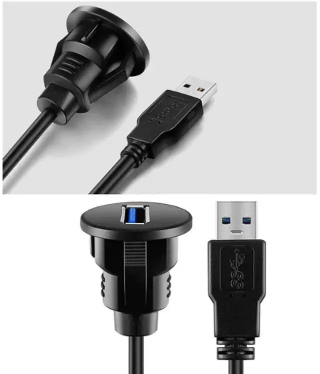 2 Pack Small USB 3.0 Male to Female AUX Flush Panel Mount Extension Cable for Car Truck Boat Motorcycle Dashboard 3ft