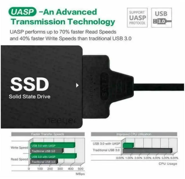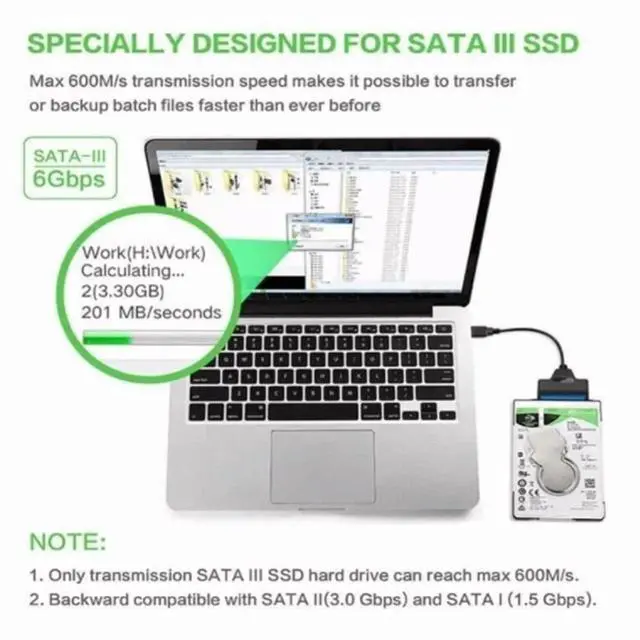 USB 3.1 Type C to SATA III HDD SSD 2.5" Hard Drive Adapter Cable 22-Pin for 870 EVO SATA III SSD 2.5
