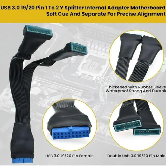 USB 3.0 Header Splitter Extension Cable, 19/20 Pin 1 to 2 Y Internal Hub Splitter, Internal Adapter DIY-Cable for Motherboard