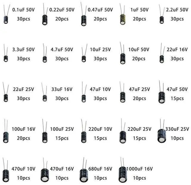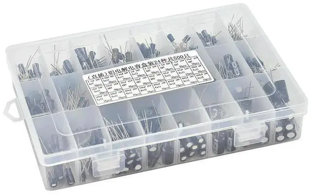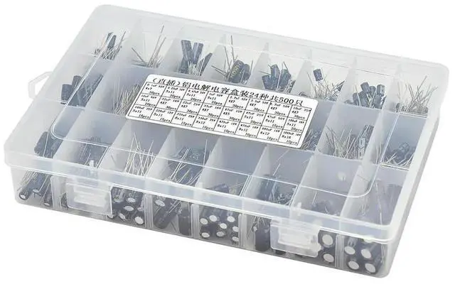 500Pcs/lot 0.1UF-1000UF 24Values Aluminum 16-50V Mix Electrolytic Capacitor Assorted Kit And Box