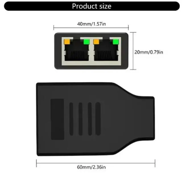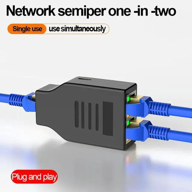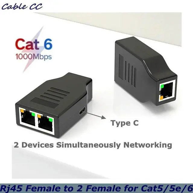 RJ45 Female to 2 Female (2 Devices Simultaneously Networking), 1000Mbps Internet Splitters 1 in 2 out, LAN Splitter Type-C Power