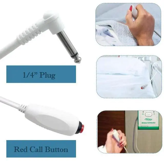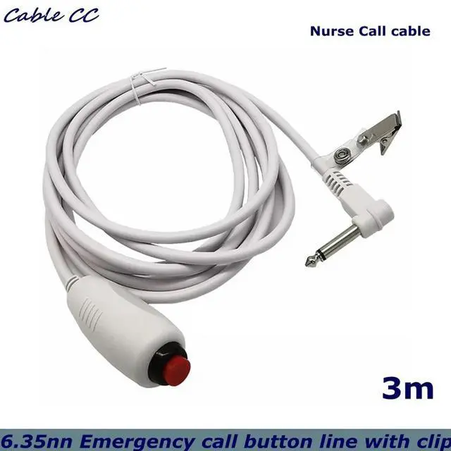 Replacement Nurse Call Cord, Red Button Momentary Call Cable for Nurse Station, 6.35mm Plug, 10 Feet (White)