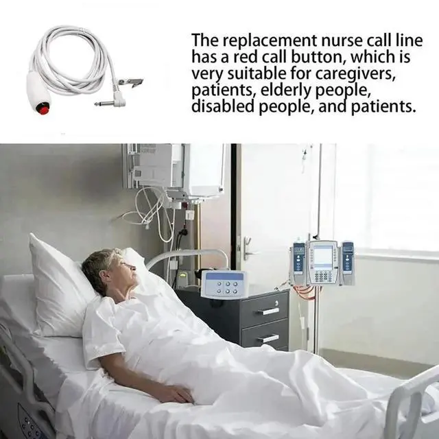 Replacement Nurse Call Cord, Red Button Momentary Call Cable for Nurse Station, 6.35 mm Plug, 10 Feet (White)