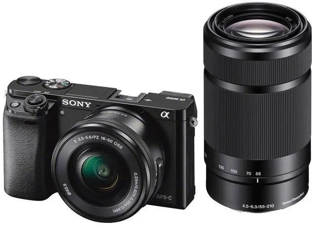 Sony Alpha a6000 ILCE-6000Y/B 24.3 Megapixel Digital Camera - 4x Digital - 3-inch TFT LCD Display - 16-50 mm and 55-210 mm Lenses