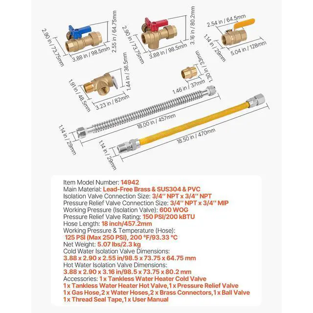 Hot Water Isolation Valve Dimensions: 3.88 x 2.90 x 3.16 in/ 98.5 x 73.75 x 80.2 mm
