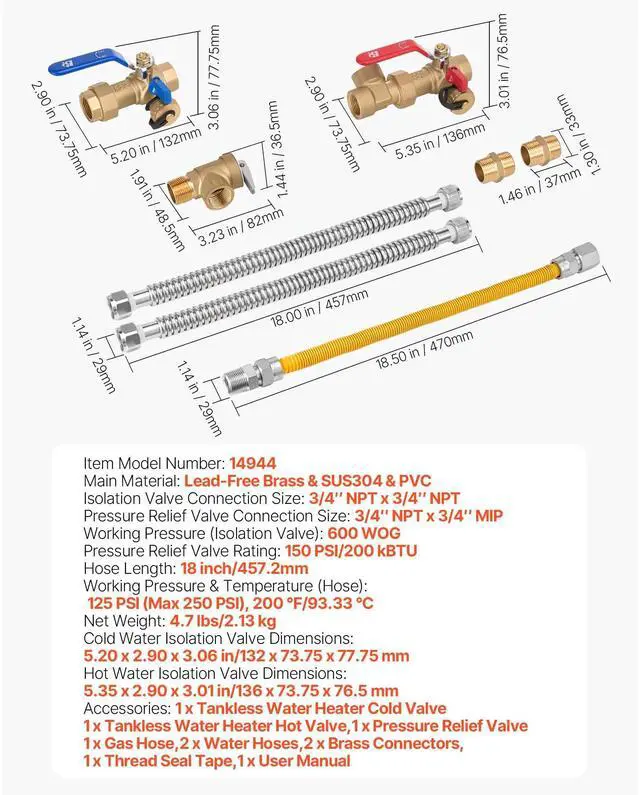 Hot Water Isolation Valve Dimensions: 5.35 x 2.90 x 3.01 in/136 x 73.75 x 76.5 mm