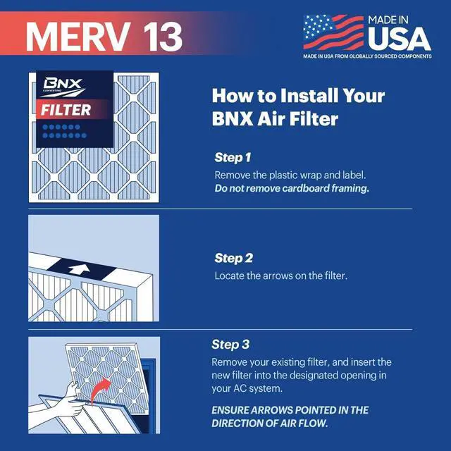 CAPTURES MICROSCOPIC PARTICLES - The BNX air filter has a MERV 13 rating allowing it to capture 98% of airborne particles without impacting air flow. Captures microscopic particles such as virus-carriers, bacteria, odors, smoke, and pollen, pet dander, allergens, dust, lint, mold, dust mites, smog.