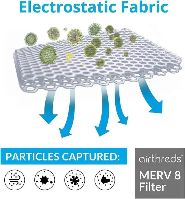 Keep Home Air Clean: Made from natural electrostatic material, AirThreds attracts and captures 90% of pollen, dust mites, mold, larger dust particles, common allergens, and helps reduce pet dand in your home. AirThreds is rated at MERV 8 to maximize air flow, while maintaining efficiency; providing the most effective air care!