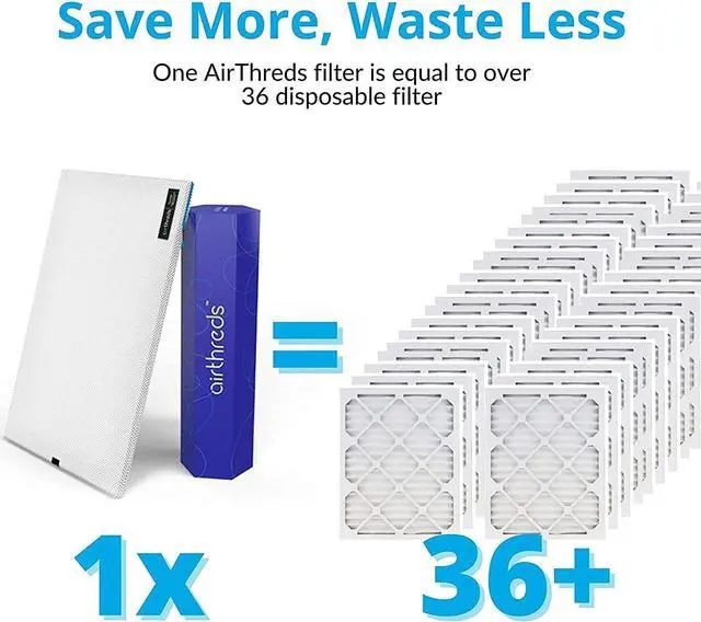 Easy Care: AirThreds is the world first machine washable and dryer friendly home air filter. Once a month or even more if you want, just toss your filter in the washer, then the dryer, and your filter is like new.