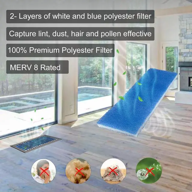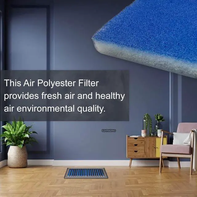 This polyester filter consists of 2-layer of white and blue polyester filter. The Filter has moisture resistance up to 100% relative humidity and temperature resistance up to 100 °C. It also does not contain silicone. And the most important feature is that it is non-flammable, also it helps to extend the life of your home.