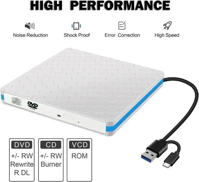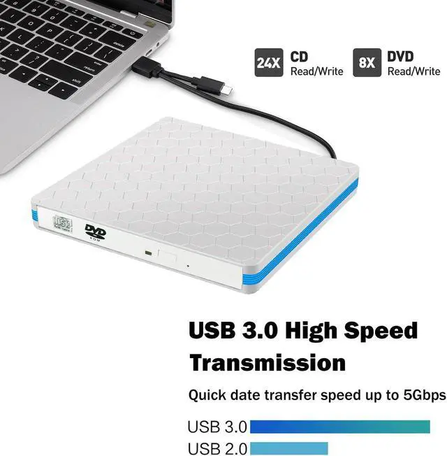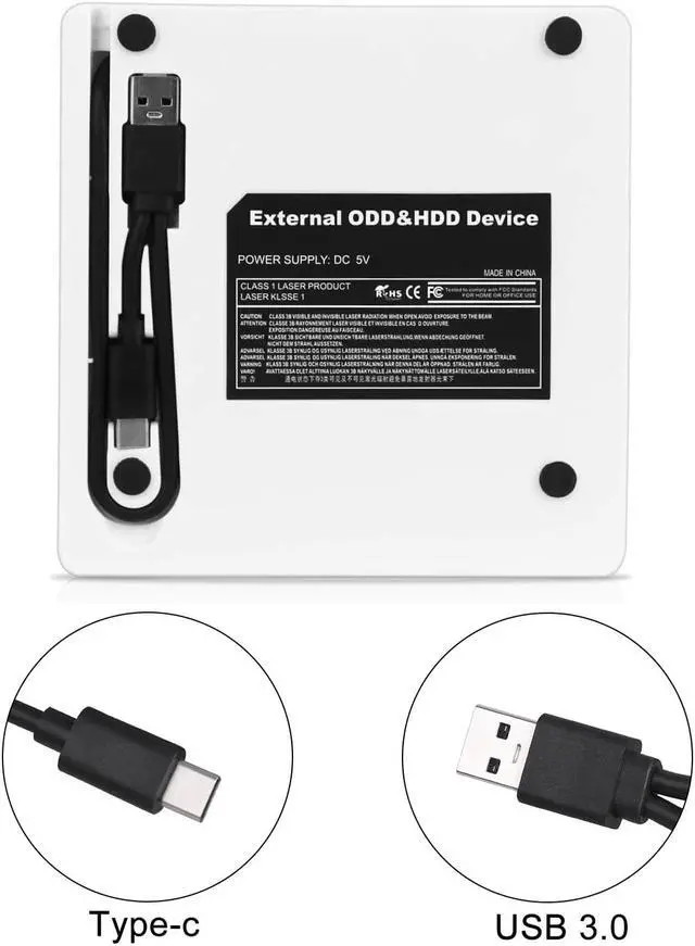 USB 3.0 and Type-C Interface: Without driver program or extra power required, fully powered by usb ports. Specially designed for dual port Type C and USB 3.0. This DVD-RW drive provides you high speed data transfer with strong fault tolerance. Compatible with USB 2.0