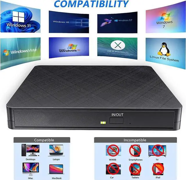 Supported reads: DVD ROM (single layer); DVD ROM (dual layer); DVD±R; DVD±R DL; DVD±RW; DVD RAM; CD ROM; Finalized CD-RW; Date/CD DAE; VideoCD; Finalized CD-RW. Unfinalized CD-R/RW; TF/SD cards