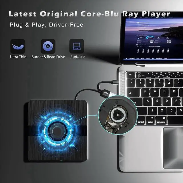 - 3D Ultra HD USB CD Drive: Wbacon USB 3.0 & Type-C external Blu-ray drive offers support for 3D playback and delivers high nearly to 4K. However, it's important to note that the drive does not support the playback of 4K Ultra HD discs. It is essential to have playback software on the computer that supports the Blu-ray format. If copyrighted external blu-ray drives have zone bit code protection, you need to download the shielding software Any DVD to decode the zone bit code.