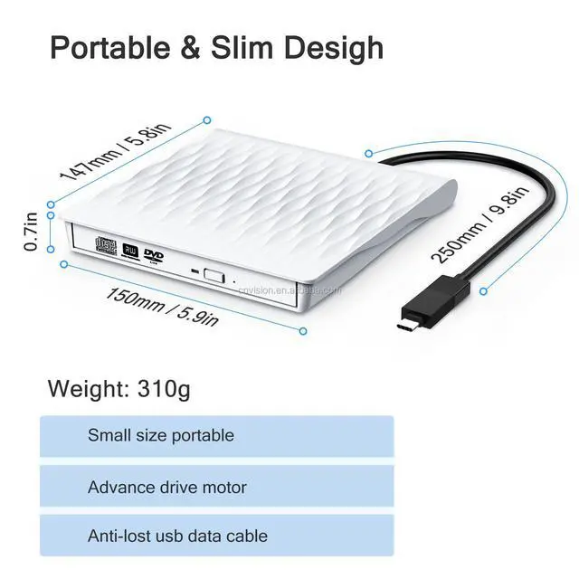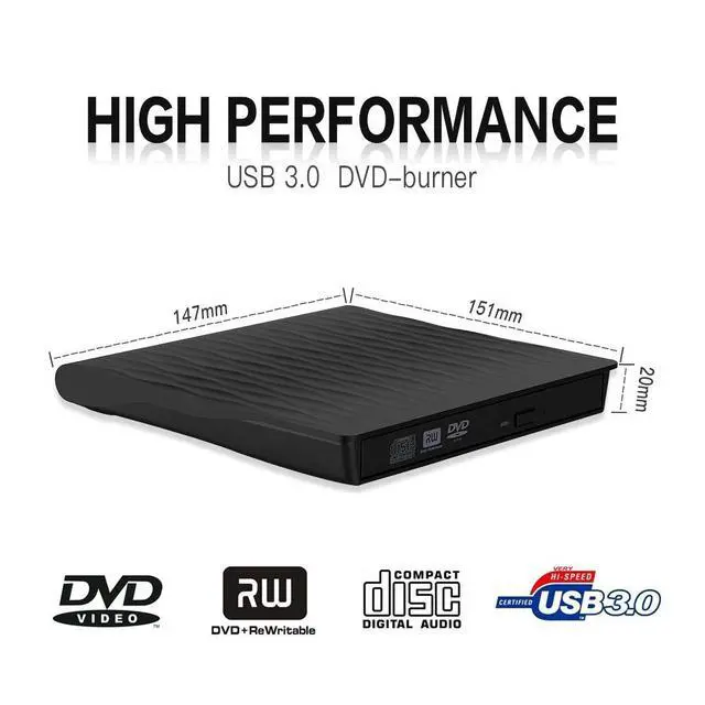 • DVD Drive USB 3.0 External Optical Drive DVD-RW Player Burner Slim Portable for iMac Laptop CD/DVD-ROM