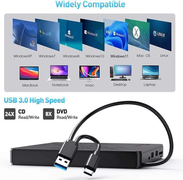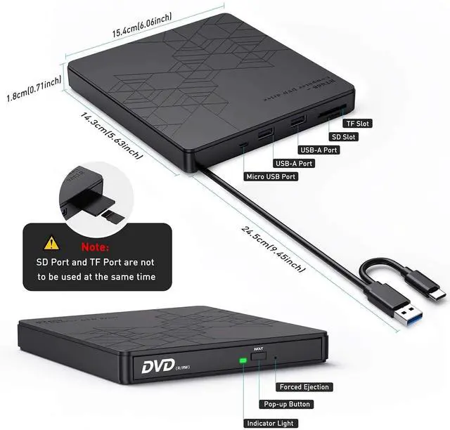 Usb External Dvd Reader USB 3.0 Type C DVD-RW CD-RW Burner Recorder TF SD Optical Drive CD DVD ROM Writer for PC Laptop