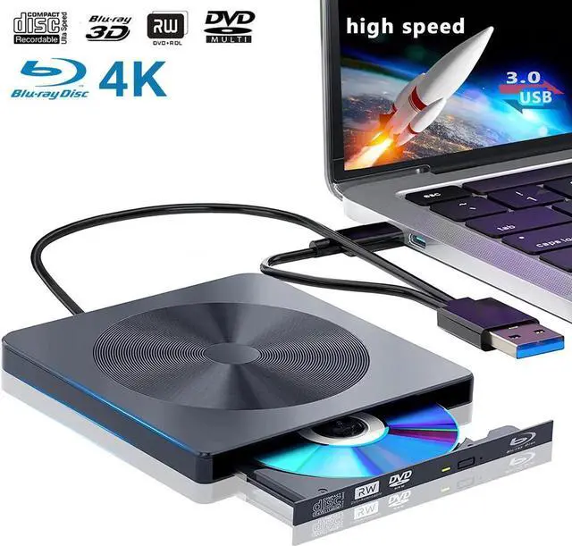 Features: USB 3.0 & USB-C cable This slim CD/BD/DVD external Blu-ray drive has an excellent compact design and comes with USB 3.0 and USB-C cables. The external blu-ray drive is easy to carry and adopts a fit type integrated with a standard USB cable. The external blu-ray drive can be used intelligently without additional connection The data cable can be easily removed when the external Blu-ray drive is in use, and it can be easily organized when not in use Small and light & high resolution external blu-ray drive Support 3D player, enjoy real clarity close to 4K quality.