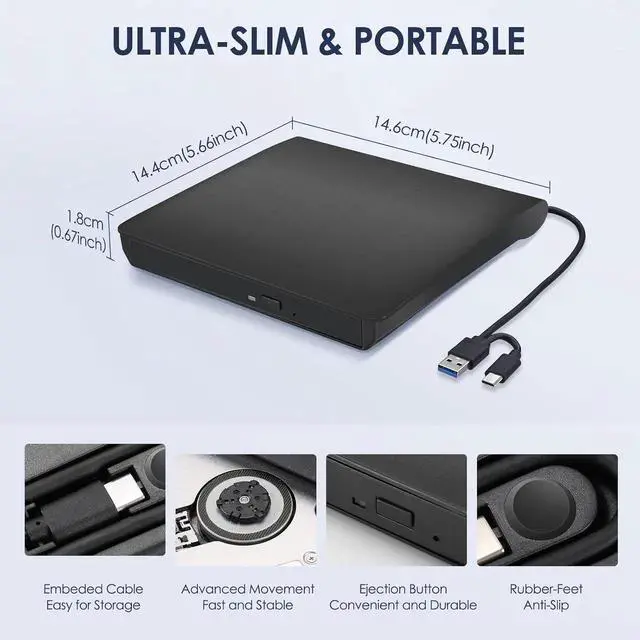 Unique Intelligent Technology: Embedded cable design, made with premium wire drawing material of shockproofing, low noise, anti-interference and high durability, works well in burning, writing and reading