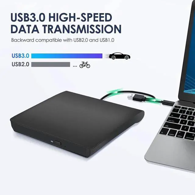 High Speed TransmissionThis external CD drive is compatible with Type-C and USB3.0 and backwards compatible with USB2.0 USB1.0, bringing you faster data transmission speed (up to a maximum of 5Gbps) and stable performance fault tolerance