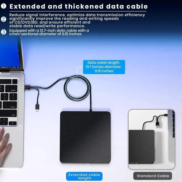 Easy to carry: external blu ray player combines two different USB cables into one. external blu ray drive for laptopeasy carrying and storage of USB3.0 and Type-C interfaces, and it can be easily connected to Type-C or USB 3.0 interface computer