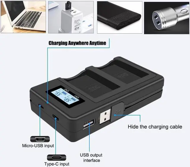 • Dual slot fast charging: Fast charging, charger with LCD screen, clear battery level at a glance.