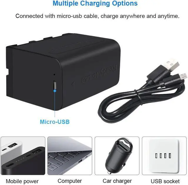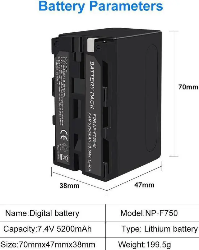• 4.No Memory Effect: LED Indicator,Standard NP-F Battery,NP-Series Battery is combined with the newest generation of CPU control, IC chip, double PCB panel to deliver super power for improved performance.Ideal Replacement and Rechargeable lithium-ion battery for Sony NP-F960, NP-F975, NP-F970 or NP-F950