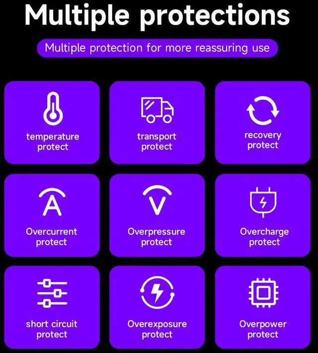 3. A high-quality battery charger kit with overcharge, short circuit, high temperature, and overvoltage protection functions. Discharge protection, if the device does not charge (no output), the power will automatically turn off after 10 seconds.