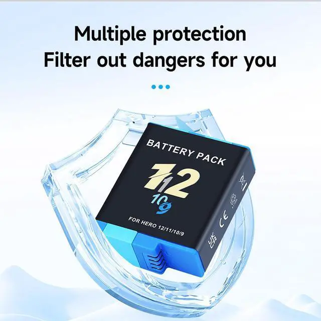This Gopro Hero 9 Black-Hero 12 Black rechargeable battery has passed the FCC CE UL CUL ETL GS certification,Over-Heated, Over-Charge, Over-Voltage, Short-Circuit protection, multiple safety features that work together to provide ultimate protection and performance for your devices.