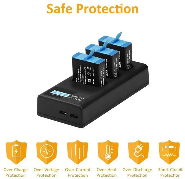 • Large Capacity Provides a long lasting of photo shooting and video recording for your Gopro Sport Camera Accessories. Up to more than 1200 recharge cycles over the lifetime of each battery
