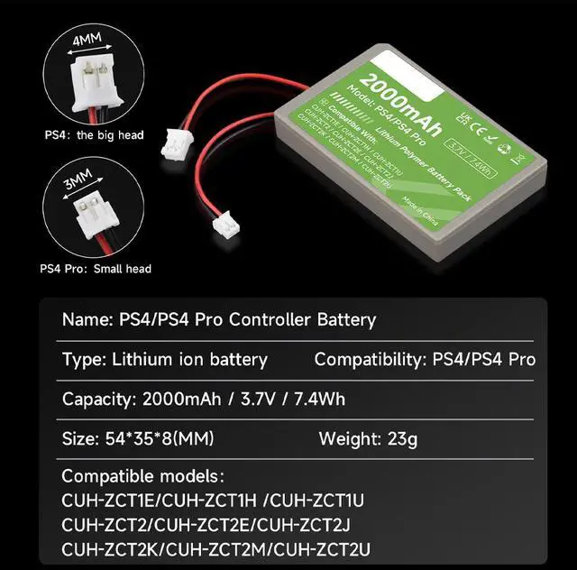 This PS4 replacement battery has passed the FCC CE UL CUL ETL GS certification,Over-Heated, Over-Charge, Over-Voltage, Short-Circuit protection, multiple safety features that work together to provide ultimate protection and performance for your devices.