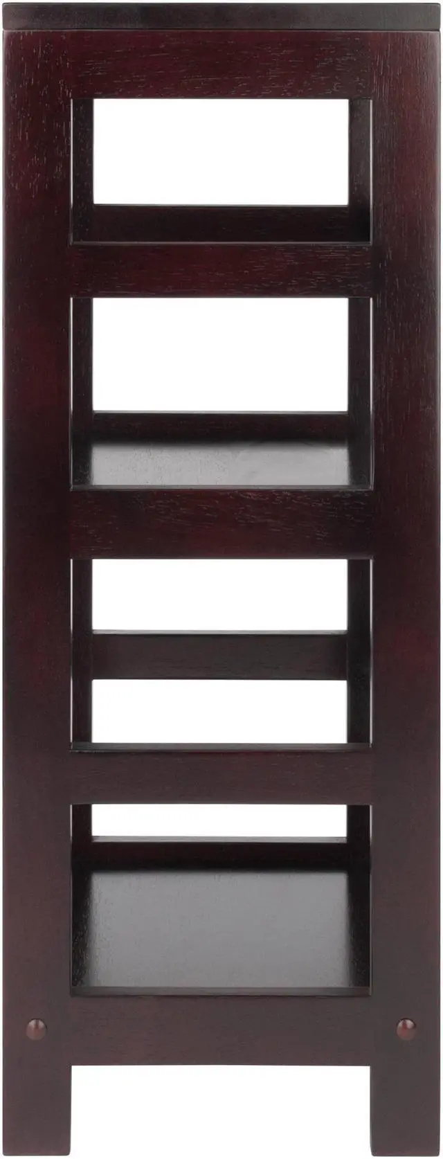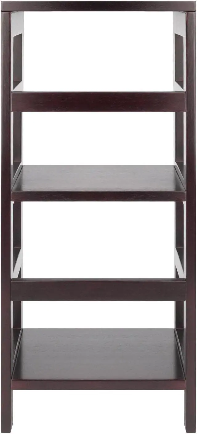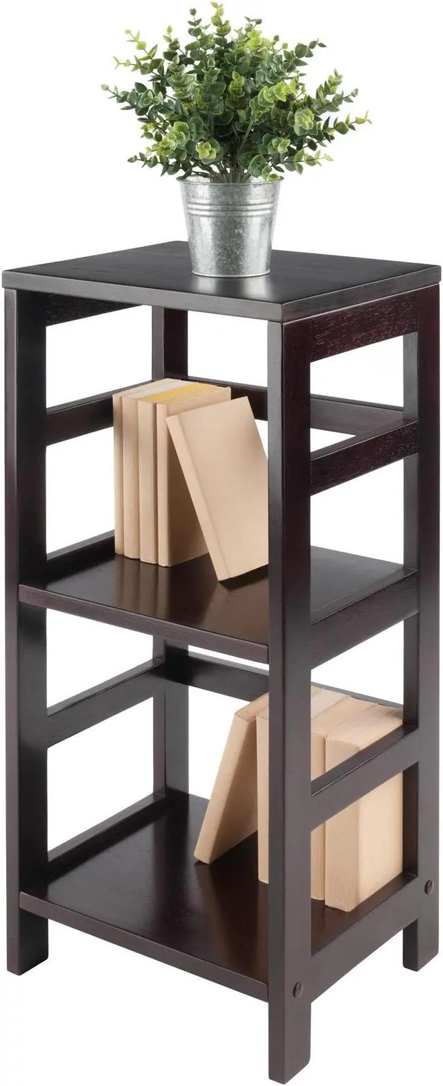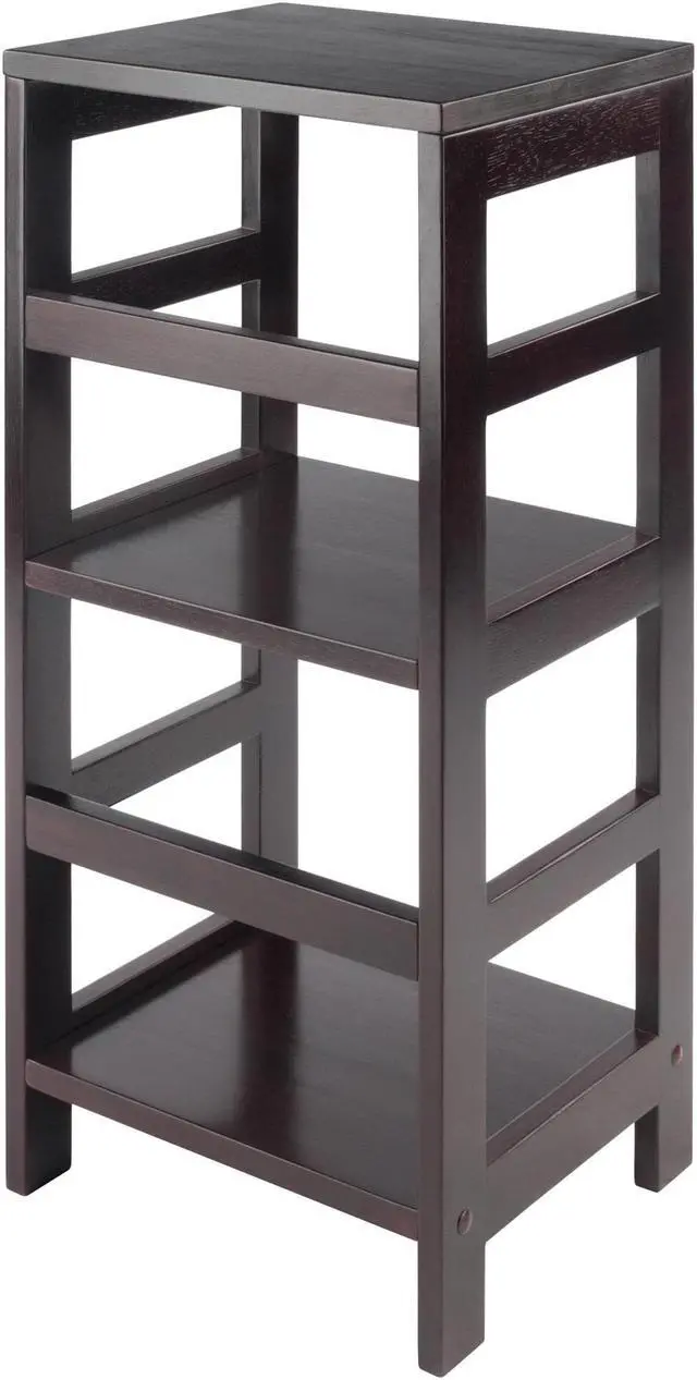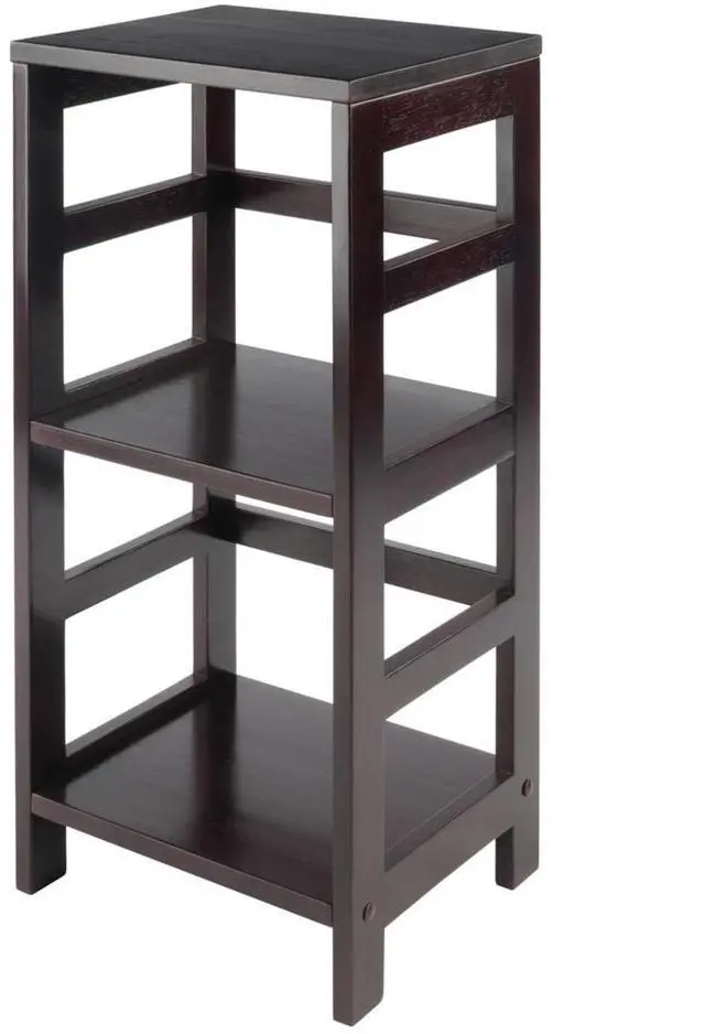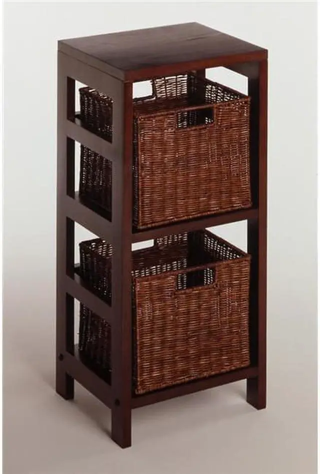 For over three decades Winsome Furniture has been a manufacturer and distributor of high quality pantryware and lifestyle furniture for the home. Specializing in solid wood Winsome has continually brought forth innovative products in combinations of solid wood and other various materials such as wrought iron aluminum steel marble and glass. Decorate in your style and display only the best quality today. With its classic sturdy design this elegant shelving unit fulfills both style and functional requirements. Its two sections hold the Espresso Small Storage Basket perfectly (Baskets not included). Mix and match with the other Espresso Storage Shelves.