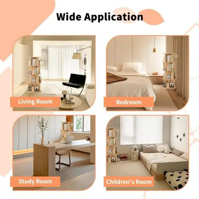Equipped with a high-quality steel ball-bearing turntable at its base, this bookshelf rotates a full 360 degrees for easy access to all corners. Whether you're organizing books or displaying decor, the rotating feature allows you to reach every item with ease, making it a functional and convenient addition to any room.