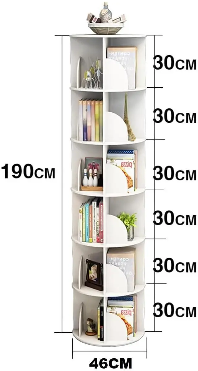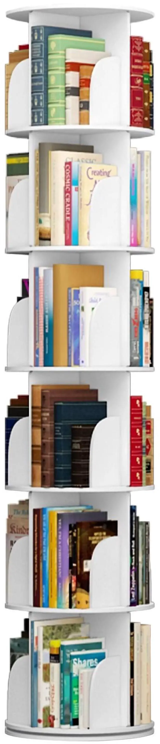 Toytexx Inc 360° Rotating Bookshelf, 6-Tier Organizer for Home, Office, Room and Adult (White)