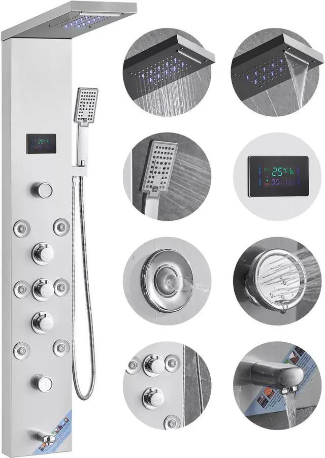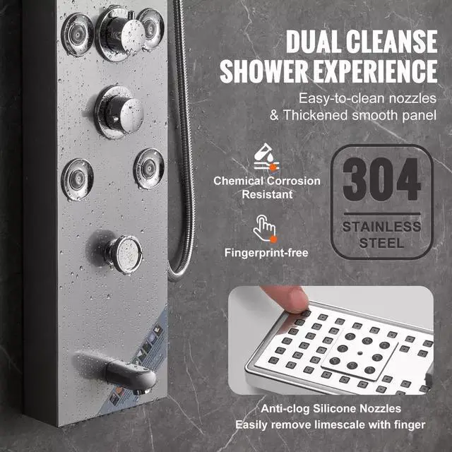 3. Constructed with a thickened 304 stainless steel panel for durability and hygiene, our shower panel resists corrosion and is easy to clean. The brass water mixing valve and PVC double explosion-proof pipe, along with a 304 stainless steel braided nozzle, ensure a robust and leak-proof system.