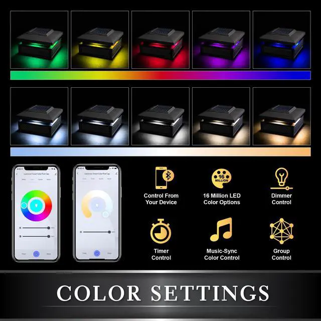 Control when and how long you want the light to be active, change the mood and theme with the dimmer control or color wheel selection with the option of up to 16 million color variations! Make a statement by choosing the music feature and watch your solar lights shine to the beat of your favorite tune! This unequivocally smart Classy Caps Lumineer solar outdoor post light offers convenience, ease and of course artistry to your outdoor setting!
