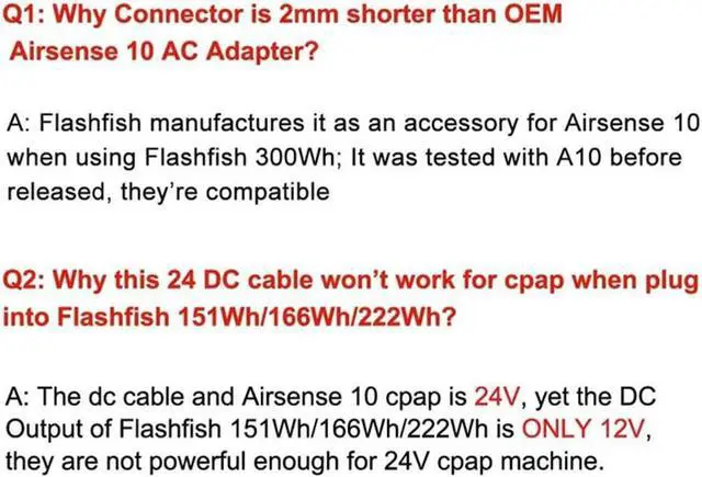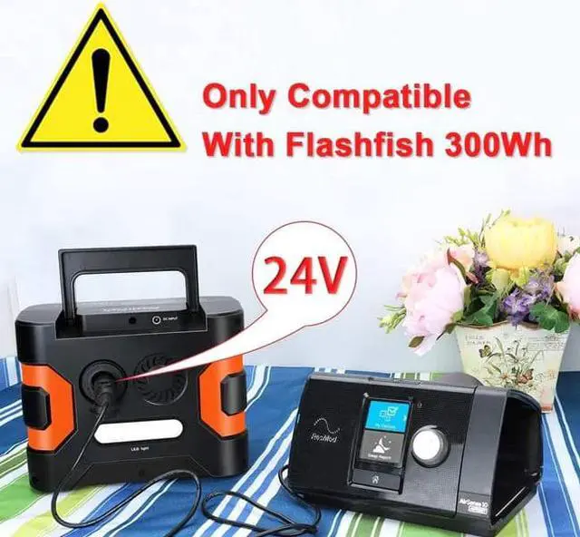 It is better use with Flashfish high capacity 300Wh lithium battery Please confirm the type of your machine input port and voltage before you purchase this 24V power cord to avoid the wrong. Package: 1 x DC cable for Resmed S10.