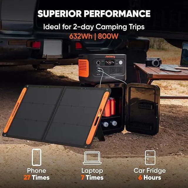 Experience the ultimate portable power solution with the Jackery Explorer 600 Plus. With an 800W output and 632Wh capacity, it supports a variety of outdoor devices, from coolers to camping lights. Pair it with the Jackery 100W Bifacial High-Efficiency Solar Panel for enhanced charging efficiency. Lightweight, durable, and powerful, the Jackery Explorer 600 Plus is your go-to power station for all your adventures, easily charging outdoor fun.