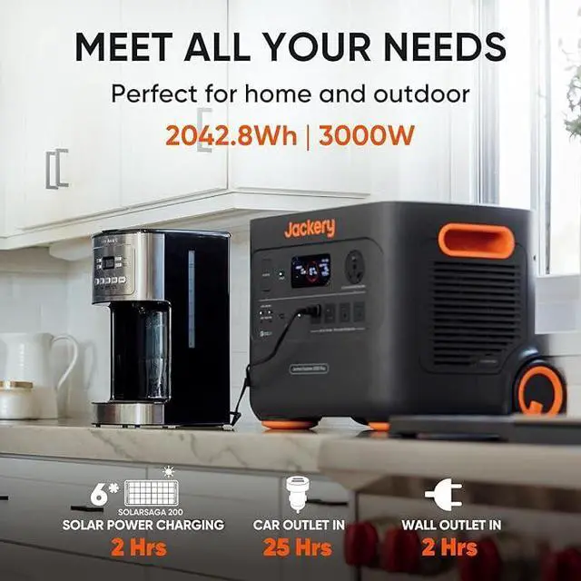 The Solar Generator 2000 Plus delivers a mega 2 kWh - 24 kWh expandable capacity. Expand all the way with gigantic 24 kWh, by adding a battery pack and solar panels. Ideal for off-grid living, and powering you during extended blackouts. Taking an 6 hours for a full solar charge - power has become fully independent, charging with solar energy.