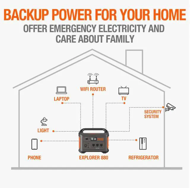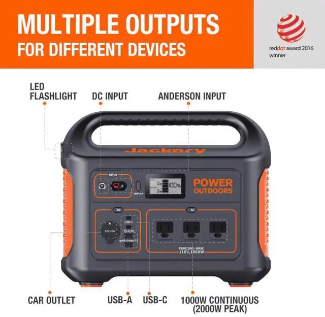 Jackery Explorer 880 Portable Power Station charges eight devices simultaneously. The portable power station is suitable for charging all devices during camping and power outages. Excellent features of the Explorer 880 power station include three standard pure sine wave AC outlets, compact design, MPPT charge controller, and an industrial-grade quiet power station.