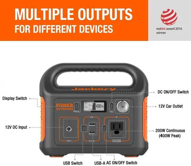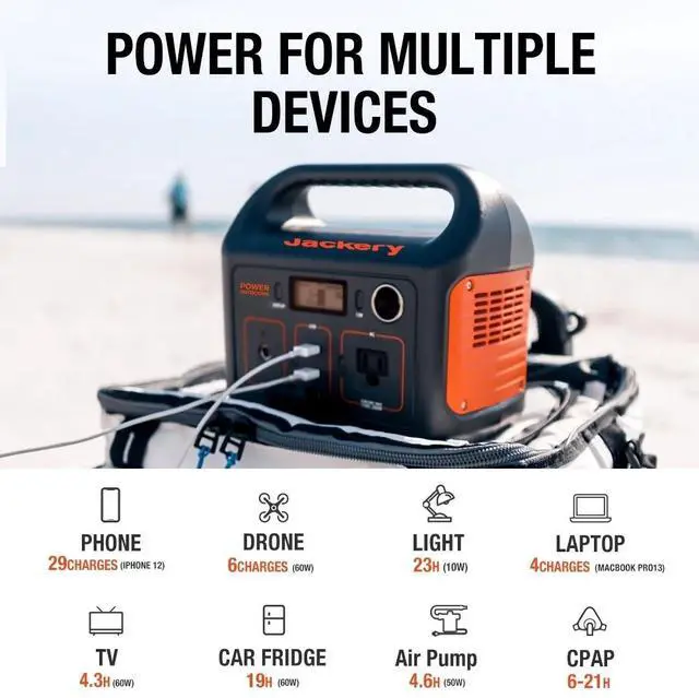 The Jackery Explorer 290 provides 290-Watt hours of power with 200W continuous and 400W peak output to handle your portable power needs, engineered with a rechargeable lithium-ion battery, which provides maintenance-free energy without the hassle of fuel or fumes. It is perfect for indoor and outdoor use. Explorer 290 can also be used for home emergencies when suffering from power outages caused by storms.