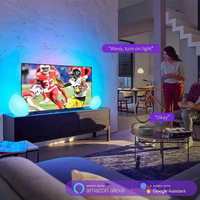 Voice Control: You can enjoy voice control on the smart table lamp via Alexa & Google Assistant of colors, brightness, and effects.