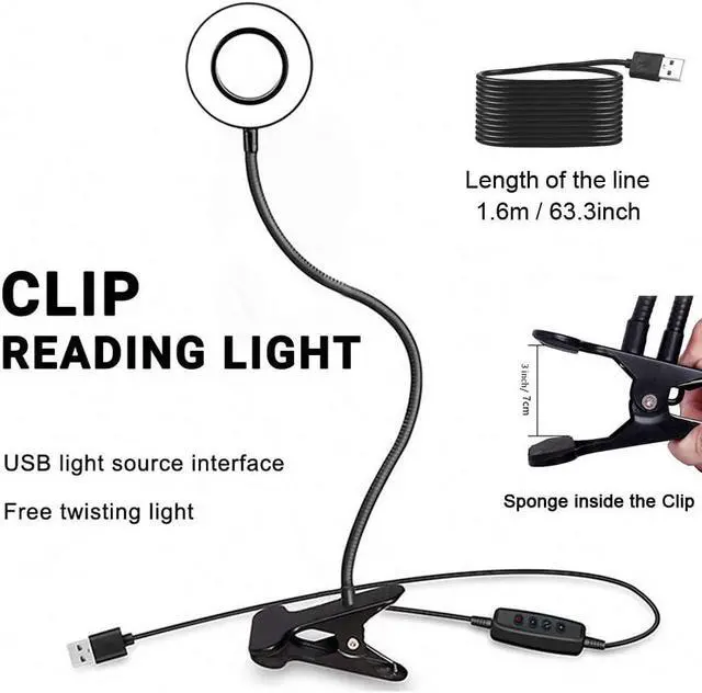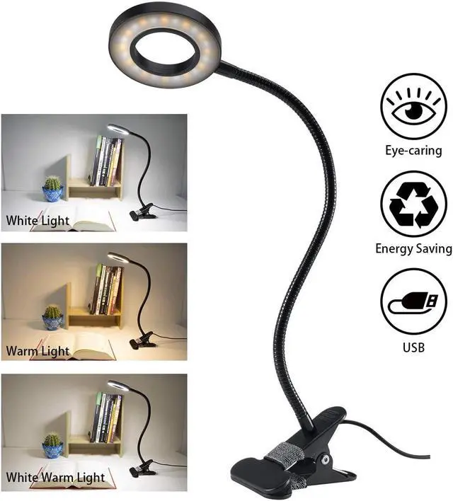 3 Color Modes & 10 Levels Dimmer: The Clip Lamp feature with 3 lighting modes (white light, warm light and warm white light), each lighting mode has 10 brightness dimming levels, low brightness is ideal as a night light using without disturbing your bedmate; while high brightness is suitable for reading or studying.Easy to switch, satisfying your different light demands in daily life