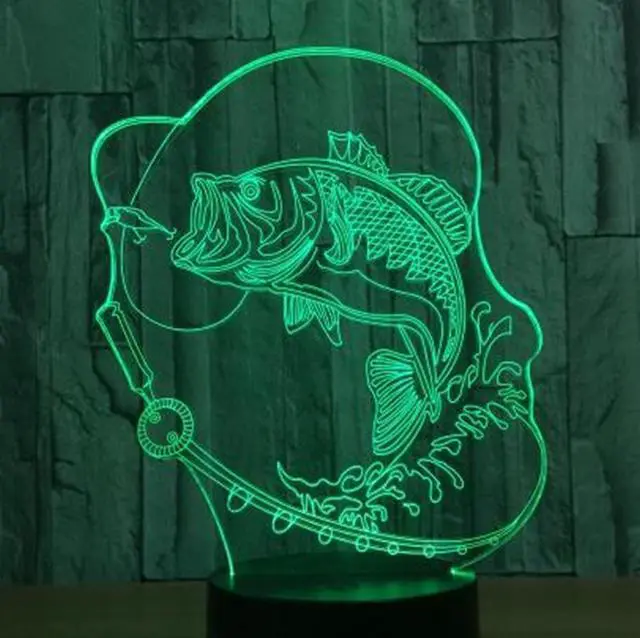 Weastlinks 3D LED Night Light Go Fishing 7 Color Change LED Lights USB Novelty Lamp Children's Night Light Atmosphere LED Desk Lamp