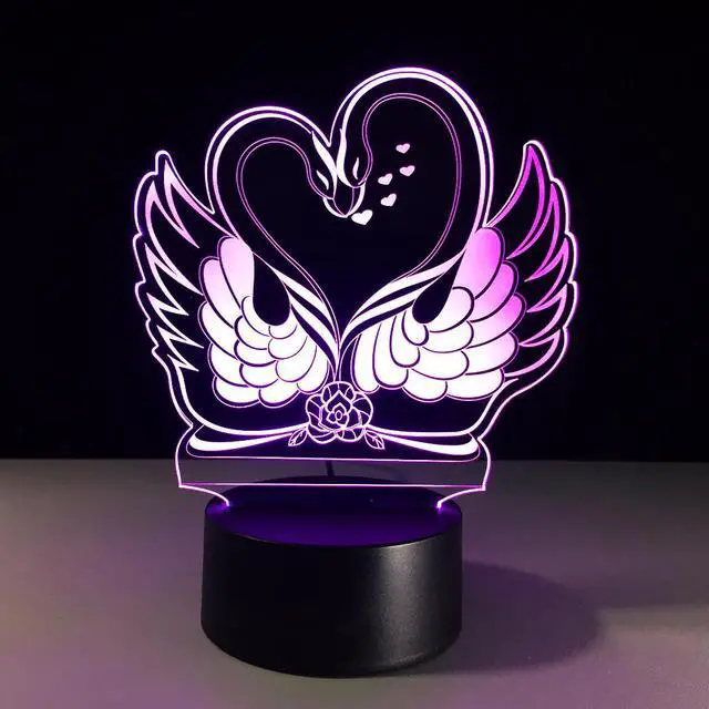 Weastlinks Colorful Two Love Swan 3D Night light Table Lamp Acrylic Stereo Lights Children's Room Decorative For Birthday Christmas Toys Lovers Gifts