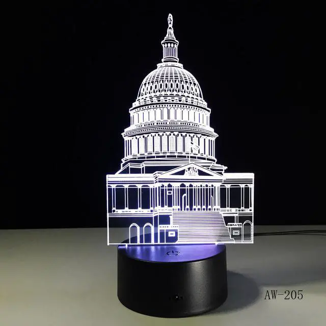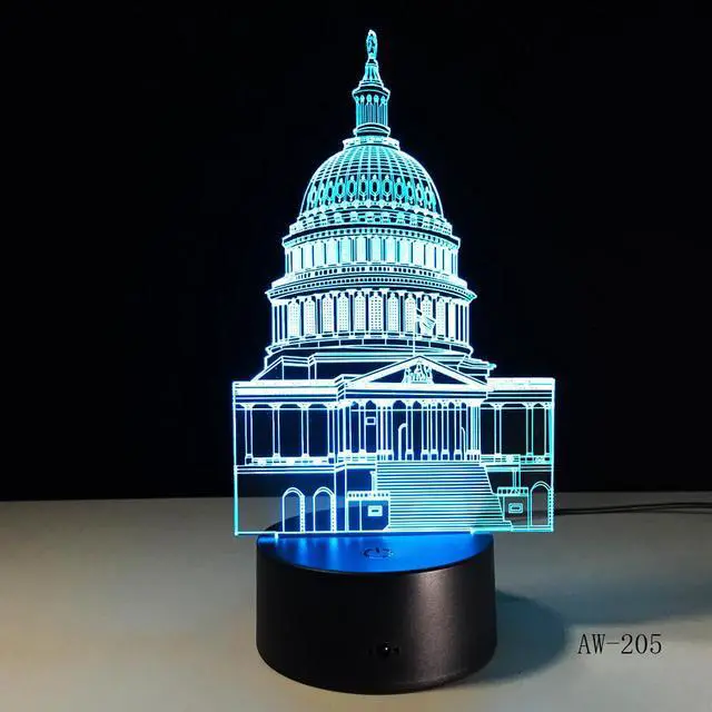 Weastlinks Statue of Liberty White House 3D Illusion Night lightTable Lamp for Kids Bedroom Decoration Nightlight LED RGB Touch Sensor Gift