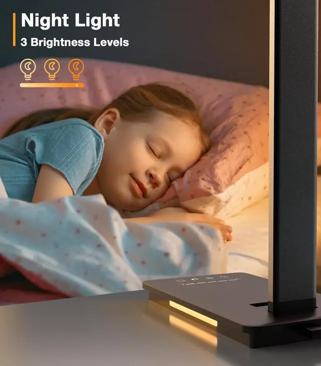 Touch Controlson & Night Light-- Unlike some other lamps, small desk lamp can easily be turned on and off with the touch sensor technology the bottom of the base. There are three brightness levels of the night light that can be adjusted by the user according to personal preference, ideal for reading or relaxing before bed.