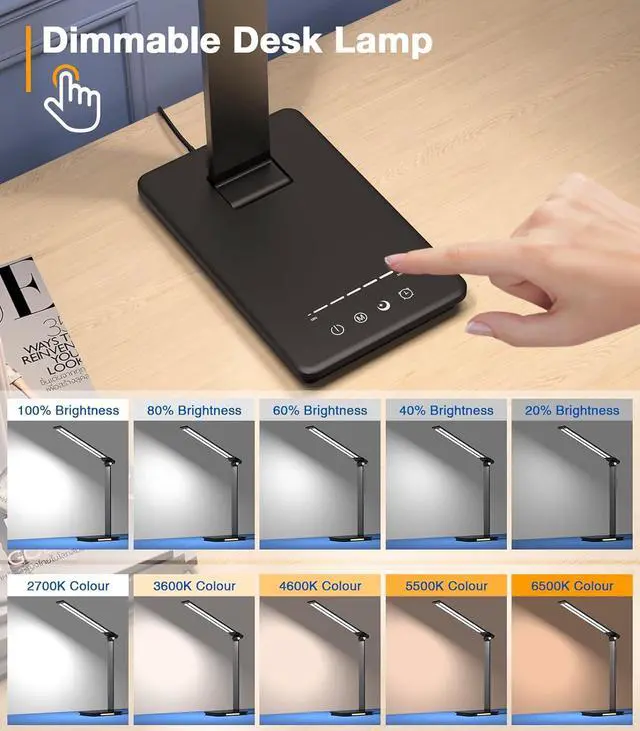 5 Levels of Brightness & Color-- We love that you can change the color temperature between 3000K for warm, 4000K for natural and 5000K for cool, depending on your preference or eye sensitivity Cooler light to reduce eyestrain, Warmer light is soothing also results in less blue light exposure since too much blue light before bed can have a negative impact on sleep. So Finding a cordless desk lamp that is bright enough for your needs is important.
