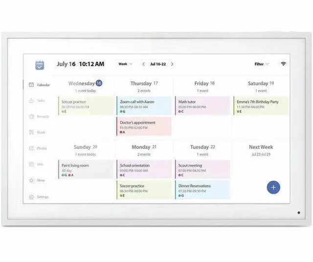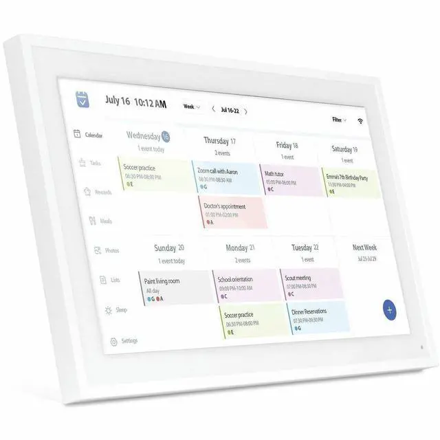 The 15.6" Smart WiFi Digital Calendar & Photo Frame is a valuable tool for managing your busy daily life. Sync your frame to your Google, Apple, Yahoo, Outlook or Cozi calendars to seamlessly consolidate everyone's schedules - all in one place with the help of the easy-to-use eCalendar smartphone app for iOS and Android. Create to-do lists, schedule chores, plan meals and more. Automated reminders help to keep all tasks on track and boosts productivity. In addition, easily share your photos and videos with incredible image clarity on the vibrant true color touchscreen IPS LCD panel in 1080p resolution at an ideal 16:9 aspect ratio.