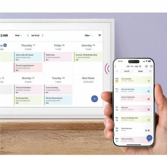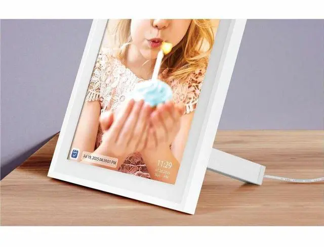 Display media in vertical or portrait mode with advanced settings that allow images to be viewed in full screen regardless of the frame's orientation. The frame features Dual Band 2.4 /5 GHz for faster media delivery. Smart Family eSchedulingSync your Google, Apple, Yahoo, Outlook and Cozi calendars to the frame. With color-coded events, to-do lists