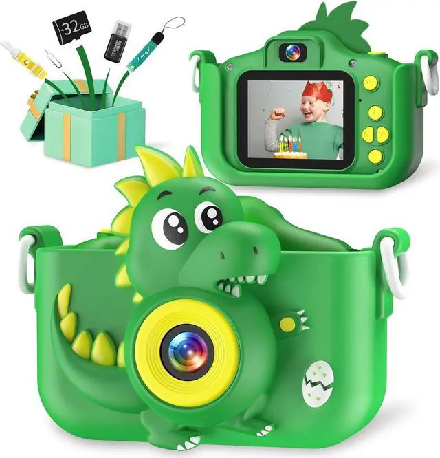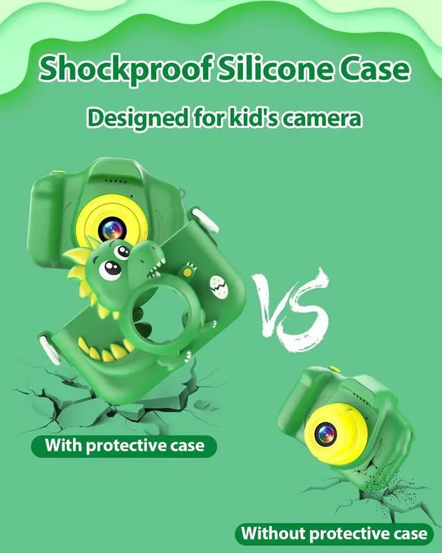 Safe & Dino-tough Silicone Case Qupite's camera for 3-year-olds rocks a unique dinosaur silicone pattern that's shockproof, drop-proof, and tough as nails. The case is made from eco-friendly silicone that's safe and non-toxic. Plus, it comes with a handy hanging rope, so your little adventurer can carry it around without stressing about accidental drops.